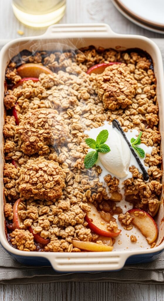 Apple crumble feels like pie’s lazy cousin who still gets invited to every party. You skip the crust drama and still win.