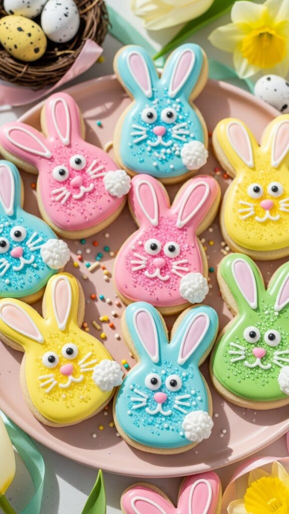 - Roll out dough, cut into bunny shapes, bake for 8–10 mins.