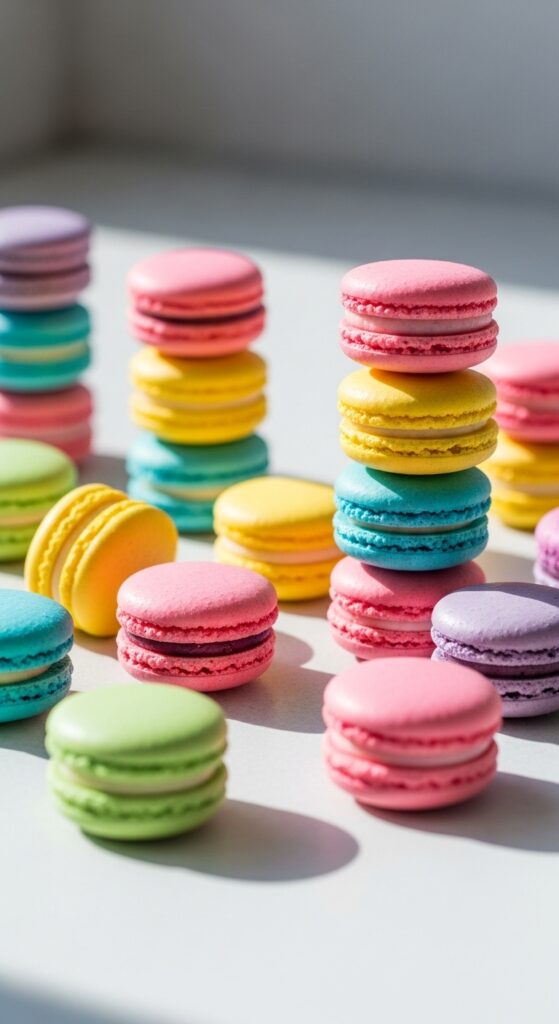 3. Fold dry mix into egg whites, pipe small rounds, and bake at 150°C (300°F) for 12–15 mins.