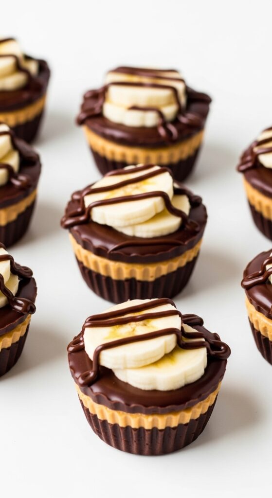 - Layer banana slices, peanut butter, and melted chocolate in cups.