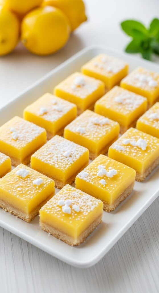 - Pour over crust, bake 20 mins. Cool, then dust with powdered sugar.