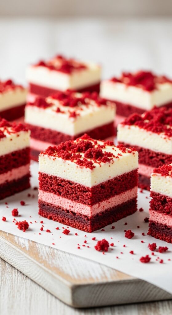 Bars feel neat and portable. Red velvet cheesecake bars taste rich without the mess.