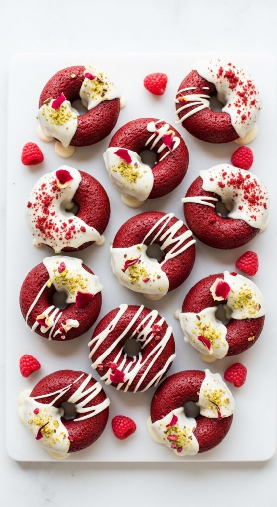 Donuts plus red velvet equals instant bakery vibes. Red velvet donuts feel indulgent without trying too hard.