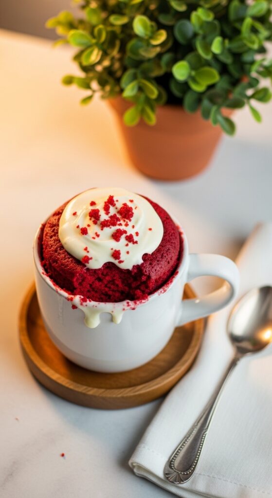 Sometimes you want dessert now. Red velvet mug cake respects that urgency.